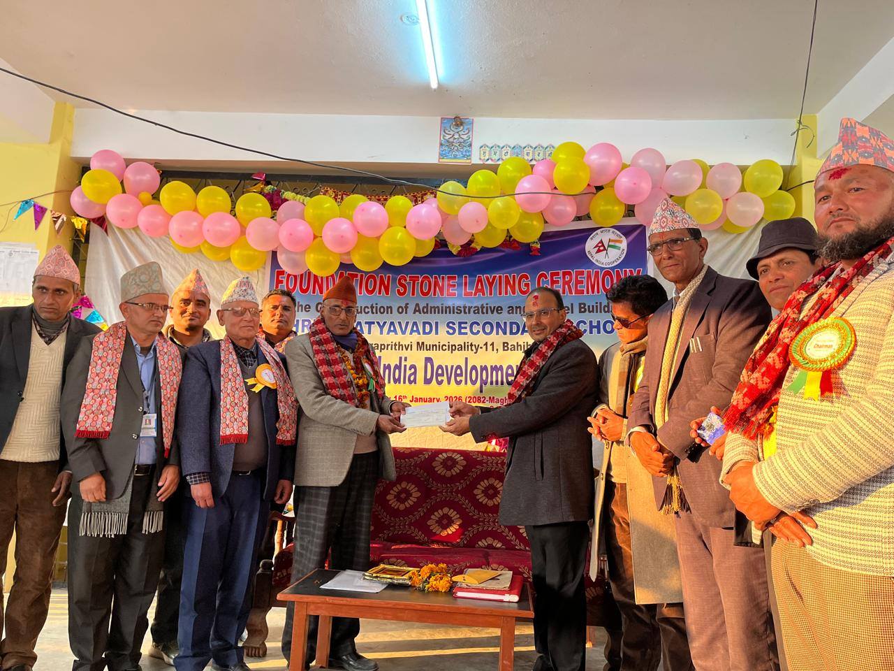 Laying of foundation stone for the construction of Shree Satyavadi Secondary School Admin & Hostel Buildings, Bhopur, Jayaprithivi Municipality, Bajhang